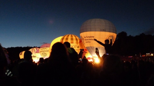 「ブリストル インターナショナル バルーン フェスタ」のなかでも最も人気のアトラクションといえば、木曜日と土曜日の2日間のみ日没後の夜21時から行われる「ナイト・グロー(Night glow)」です!音楽に合わせてライトアップされた熱気球が夜空に幻想的な姿で現れる光景は、昼間には見ることのできない熱気球のユニークで美しい姿を見せてくれます。