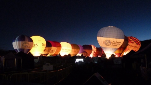 音楽に合わせて夜空にライトアップされる熱気球が美しい「ナイト・グロー」