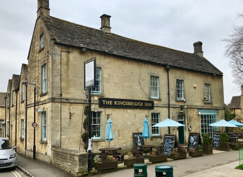ガイドブックにも載っている、橋のすぐそばにあるイギリスらしいパブ「Kingsbridge Inn」。テラス席もあり、ウィンドラッシュ川を眺めながらビールや食事を楽しめます。
