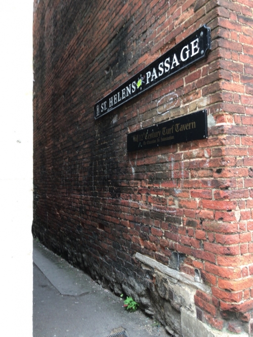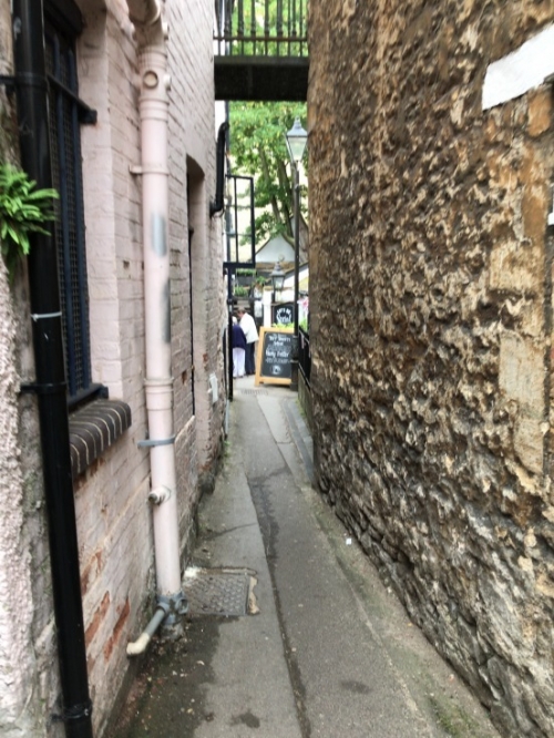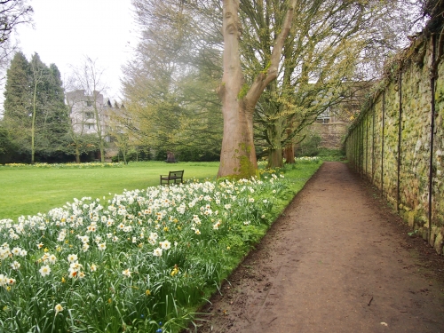 街からカレッジに続く小道は、石造りの壁に囲まれています。中世の時代にタイムスリップしたような感覚に。