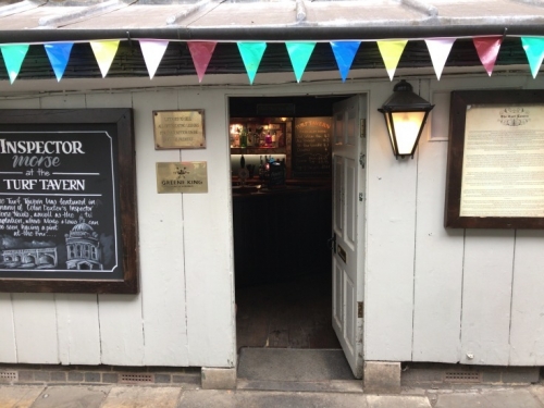 辿り着くのはテラス席がある、中庭のような空間。学生も集う、知る人ぞ知る穴場パブ「The Turf Tavern」です。