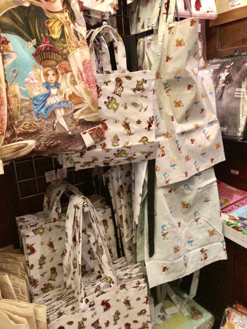 キーホルダーなどの小物、バックやコップなどかわいいアイテム目白押し。アリス好きにはたまりません。