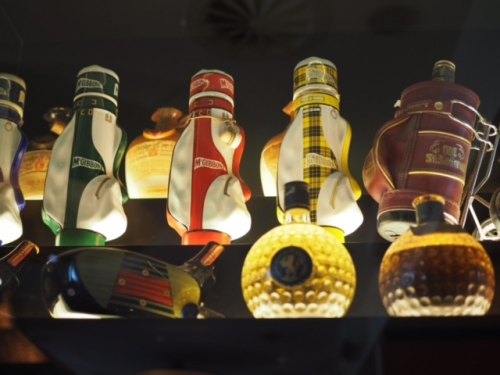イギリスらしい、ゴルフバッグやボールを模したボトルや、伝統衣装のボトル等、お茶目なコレクションもところどころにありますので、ご自身のお気に入りの一本を探してみてください。有名人が所有していたボトルもありますよ!