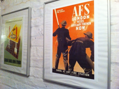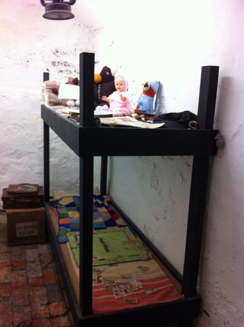 地下室には、戦時中に掲示されていたポスターやチラシ、ベッドなどが剥きだしの石壁に囲まれた室内に展示されています。ヒヤリと涼しい空気を感じながら、戦時中の情景を思い浮かべる空間でもあります。