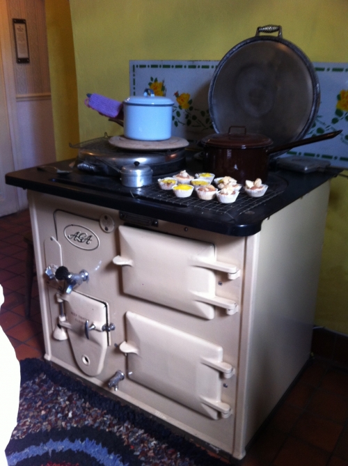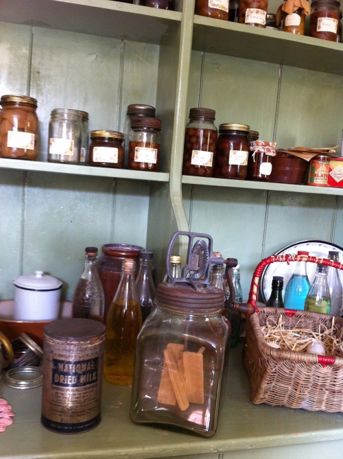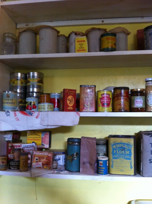 AGAというメーカーの調理台は、オーブンや収納スペースもついていて素敵。キッチンの棚には昔のパッケージの商品が並び、レトロな雰囲気を醸し出しています。その他にも、ローストビーフと一緒に食べるヨークシャープディングや、パンを作る小麦粉、こね台、陶器の大きなボールなどが展示されています。