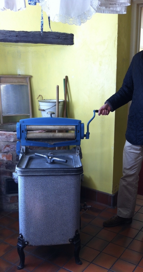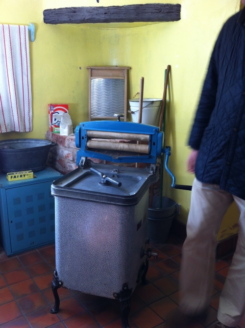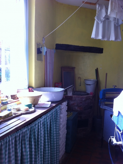 キッチンの一角には洗濯場もあり、手動式の洗濯機や洗濯板などが置いてあります。またキッチンではお湯を沸かす道具があるので、桶にお湯を張って子供をお風呂に入れることもあったようです。この場所に降り立つと、何でも揃って様々な用途で使えるキッチンが「農家のエンジン室」と呼ばれた理由がわかります。