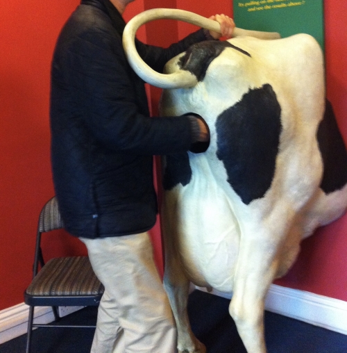 左上の写真は、妊娠の確認や炎症のチェックなどをするための方法を体験するコーナーです。知識と経験が求められますが、現代でも用いられている安全で適格な検査方法です。