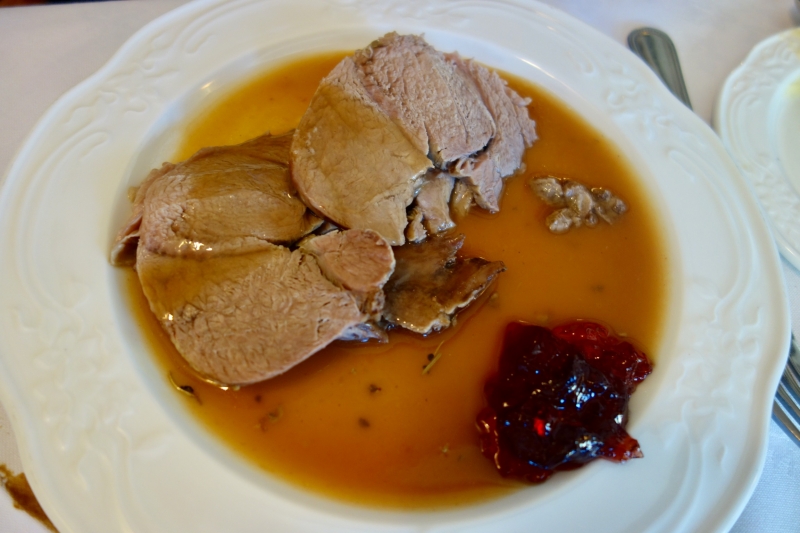 Roast Lamb(ロースト・ラム)は、数時間じっくりハーブと一緒に焼いているので、臭みもなくとても柔らか。日本では中々食べられない一品なので、オーダーしてみましょう。まずは、そのままでラムの旨味を堪能し、次にクランベリーソースを付けて、最後にグレービーソースをかけて頂けば、三種類の味が楽しめます。
