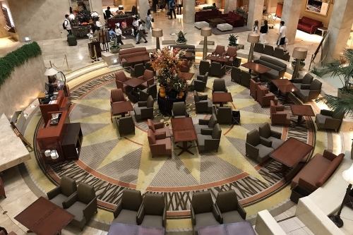 ①ロビーラウンジでチェックイン(ウェルカムドリンク付き)