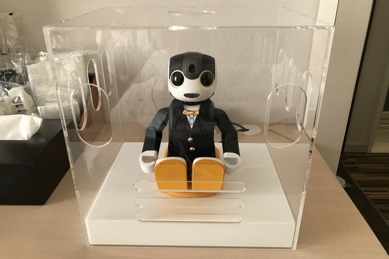客室コンシェルジュとして、全室にコミュニケーションロボット「ロボホン」がいます。ロボホンに話しかけると、クイズを出してくれたり、ダンスを踊ってくれたり、童話を語ってくれたりと楽しい時間を過ごす事ができるでしょう。ぜひロボホンに話しかけて、ホテルライフを楽しんで下さい。