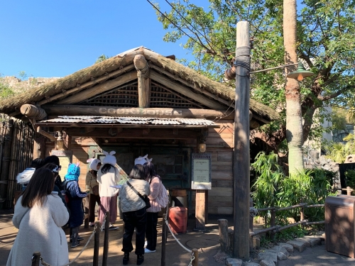 ソーセージドッグはインディージョーンズのアトラクションの近くにある「エクスペディション・イート(写真左)」で購入することができます。他2点は、レイジングスピリッツの近くにある「ロストリバークックハウス(写真右)」というワゴンカートで購入可能です。