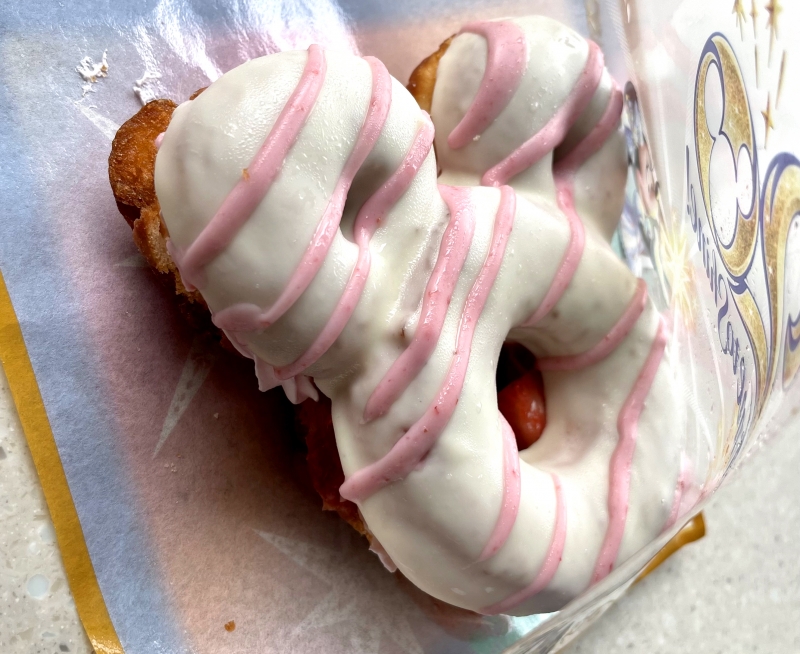 20周年のイベント期間中は、メディテレーニアンハーバーにある「マンマ・ビスコッティーズ・ベーカリー」で、パーク初となる、ミッキー型のストロベリー味のドーナツが楽しめます!コーティングされた、甘いチョコレートと甘酸っぱいストロベリーがよく合います。