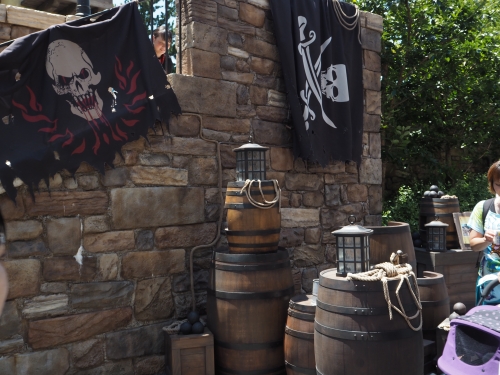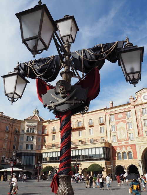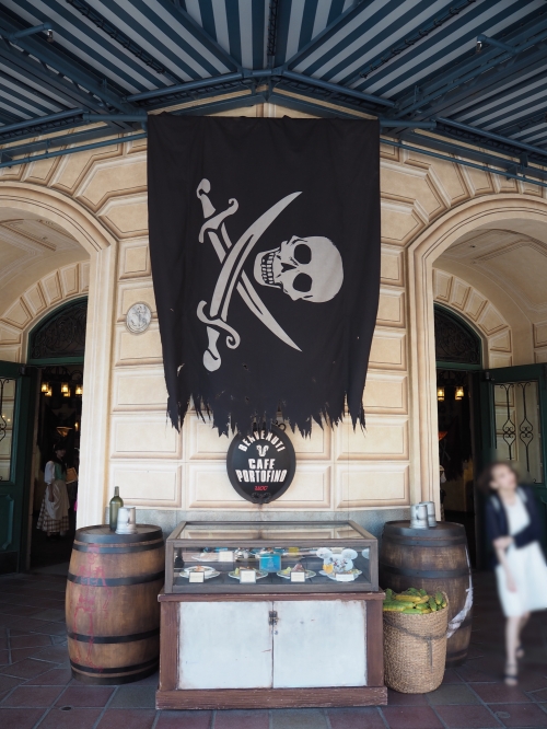 ディズニーシーに入ったらまず目に入るのが、この入り口の海賊デコレーション。ドクロが描かれたとってもクールなものになっています。他にも、一部のレストランや街灯もパイレーツバージョンになっているんですよ。普段はカラフルでかわいらしいデコレーションが多いディズニーですが、2017年の夏はひと味違いますね!