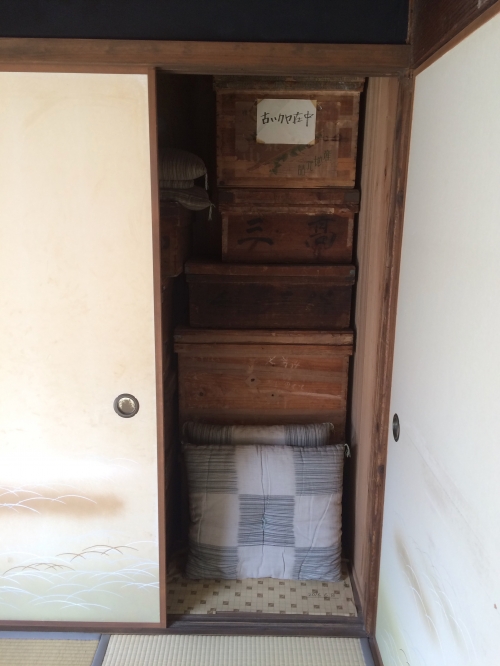 実際に使用されていた長持や布団、おもちゃ、日用品や家財道具などが寄付により集められて、押入れや戸棚などに収納されています。