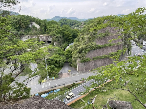 山頂には記念碑があり、頂上周辺からは眺望もあって大谷石の岩壁や大谷公園を一望することができます。