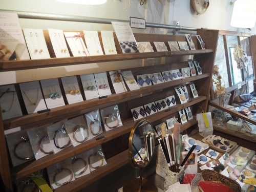 地元のクリエイターの作品を集めたコーナーもあり、クオリティが高くてとてもおすすめです。大谷石でできたアクセサリー、栃木レザーの皮小物、間々田エリアの伝統工芸の組紐など、地元民でもあまり知らないようなコアなローカルグッズに出会えます。