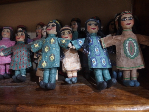 ウズベク人の伝統的な帽子、色とりどりのお面や人形もユニーク。さらに、サマルカンドペーパーは洗っても大丈夫なのだそうで、服やカバンもあります。すべて紙でできているとは、驚きです。