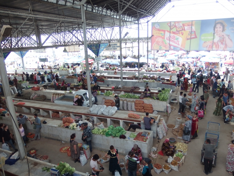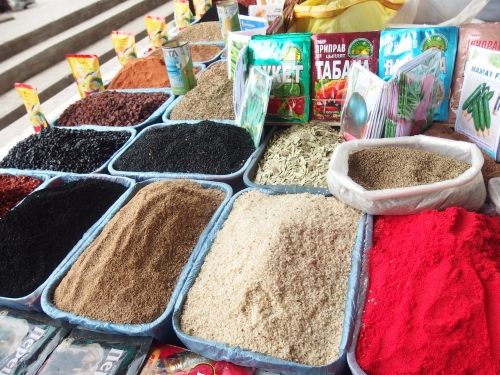 日本語専攻の学生さん2人にアテンドされ、徒歩でサマルカンドの台所としてにぎわうバザールへ。