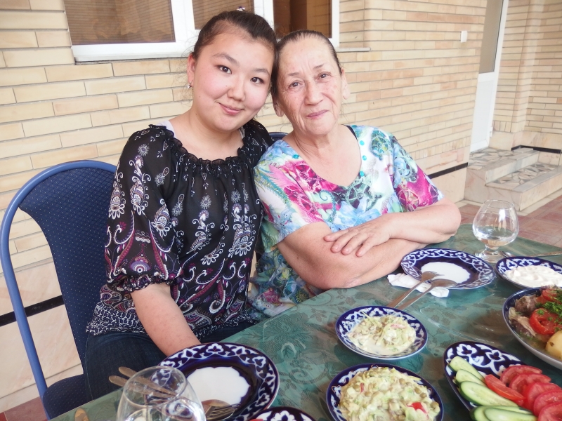 おばあさんはお客さんを招くのが好きで、たびたびこのようにお客さんと食事を楽しんでいるそうです。ことばの通じない外国人であっても、年齢も関係なく、同じ食卓について一緒に過ごすことを楽しめるなんて、ウズベキスタンの人たちのオープンマインドな性格をよく表していると思います。