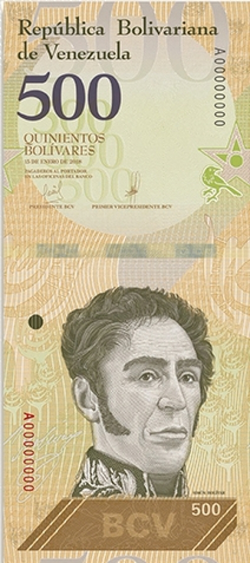 出典:ja.wikipedia.org500ボリバルーボリバル(Billete de quinientos bolívares anverso enero 2018、photo by Jimmy Olano)