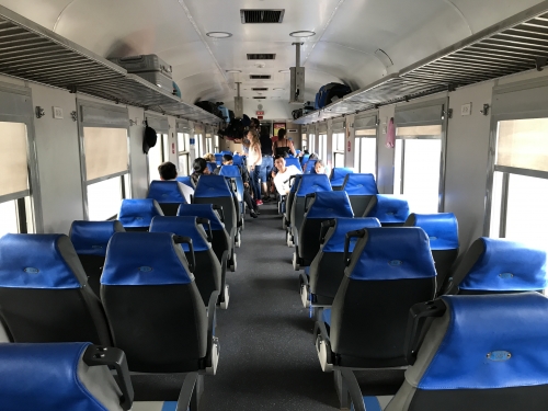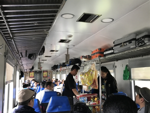 筆者が乗った日は天気が悪かったのが残念でしたが、晴れた日だととても綺麗だとのこと。窓側の乗客の皆さんはカメラで写真撮影を楽しんでいました。ということで、ダナン・フエ間のオススメの座席は、進行方向右側(海が見られる)の窓側の座席(コンセントを他のお客さんを気にせずに使える)です。
