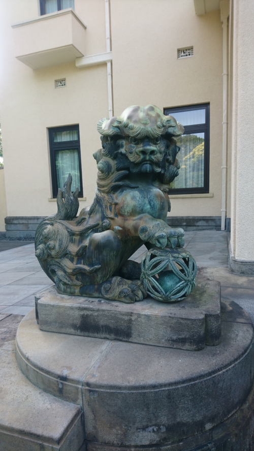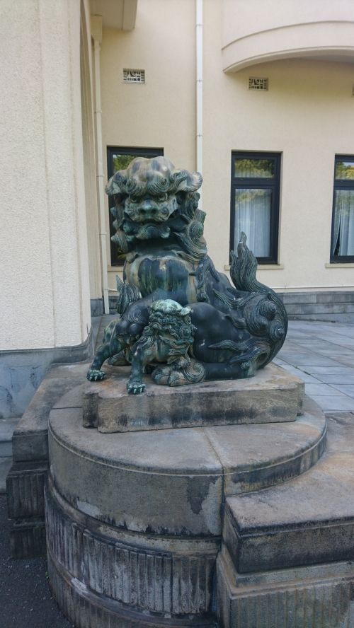 目黒にある東京都庭園美術館の敷地内にある、旧朝香宮邸の正面入口の前にいました!右側が雌で、左側が雄です。思わず嬉しくなって写真を撮ってしまいました。