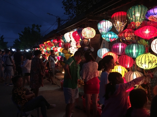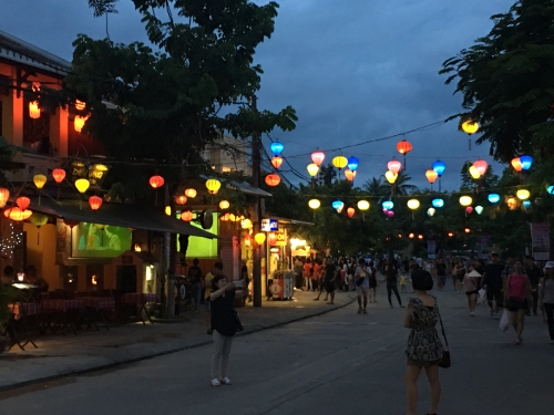 もうすっかりお馴染みになった感のあるホイアンのランタン祭。夕方薄暗くなってくると街中にランタンが灯されて、素朴な中にも風情が感じられます。