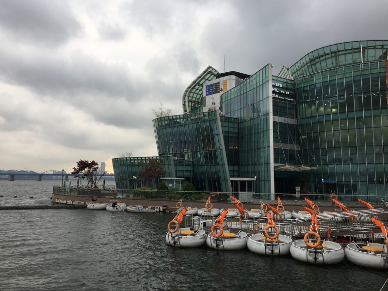手前の丸いボートは夏場は水上ビアガーデンになるらしい