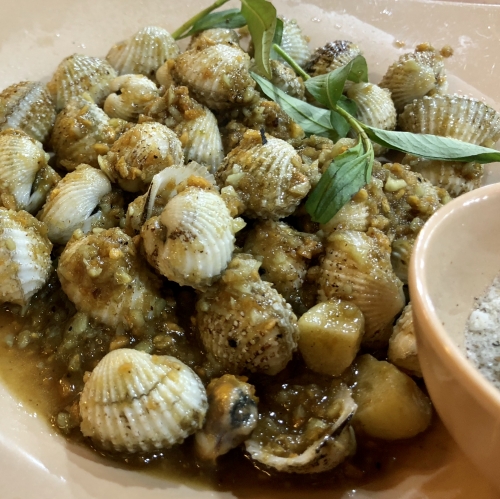 筆者はこちらの3種の貝をお勧めスタイルで調理してもらいました。貝の名称は分からなくても指差しで選べるのが良いですね。貝類は種類も豊富で安価ですので、特にお勧めです。
