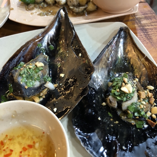 写真:bemnty大ハマグリのねぎ油ソース 40,000VND (約190円)/1つ