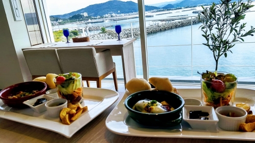 食事中も、エーゲ海…いや、和歌浦湾を一望できるので、非日常の空間で優雅なひとときを過ごせます!