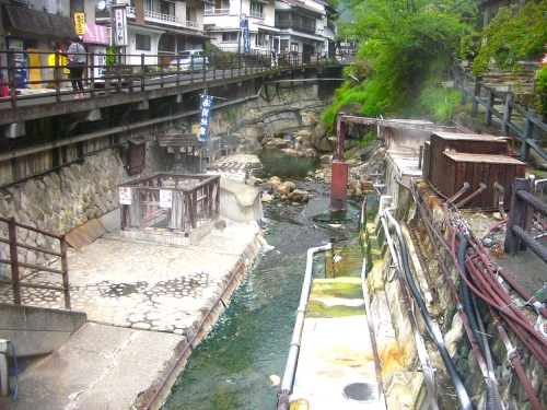 温泉街を流れる湯の谷川沿いには、日によっては1日に7回も色が変わると言われる不思議な岩風呂「つぼ湯」や、90度の熱湯が湧き出ており温泉卵などを作れる「源泉湯筒」があります。公衆浴場もあるので立ち寄りでも楽しめます。