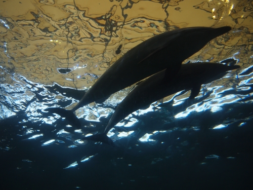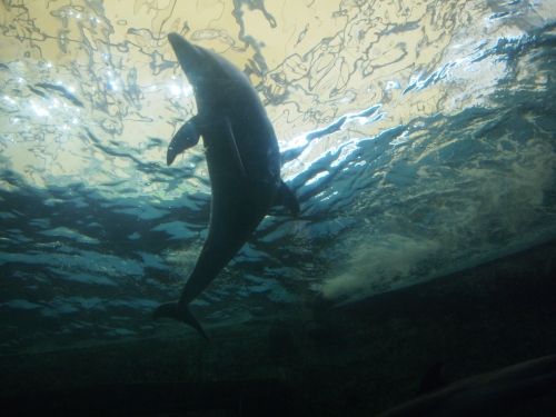 こちらにはスジイルカ、マダライルカ、バンドウイルカと三種類のイルカがいますが、スジイルカとマダライルカは飼育がむずかしく貴重なものだそうです。スジイルカにいたっては、水族館で見ることができるのは世界でここだけだそうです。