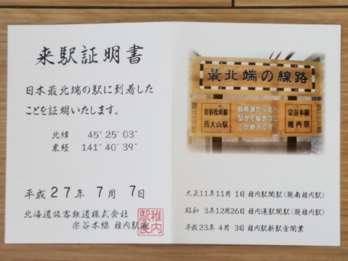 稚内駅入場券(1枚170円)を購入すると駅構内も見学できる他、来駅証明書を発行してくれるので旅の良い思い出となるでしょう!