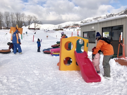 ハチ高原スキー場 のキッズパークは広くていろんな遊び方ができる…とは言っても、小さなお子様にソリなどが突っ込んだりしたら大変!