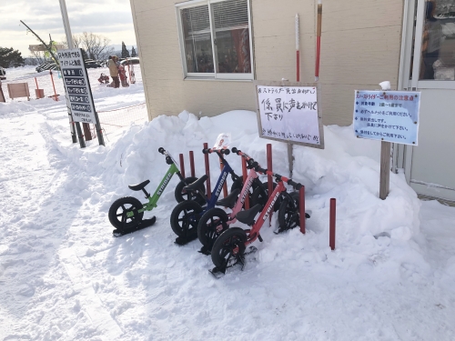 これは 「スノーライダー」。ストライダーのタイヤにソリをつけている乗り物なのですが、これが大人気!ストライダーを乗りこなしているお子様であれば飛びつくに違いありません。