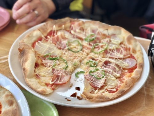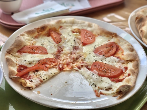 お子様が好きそうなトッピングが多いかな?という印象ですが、それでもとても美味しいです。生地が本格イタリアンピッツァのようにとても薄くて、女性でも1枚はペロリと食べられると思いますよ♪