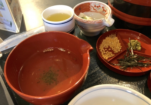 そして、三膳目は浅倉山椒が効いた出汁をかけてお茶漬けです。柑橘系の香りがほんのり立ち、サラサラと食べられます。そして四膳目の最後は自分の好きな食べ方で。