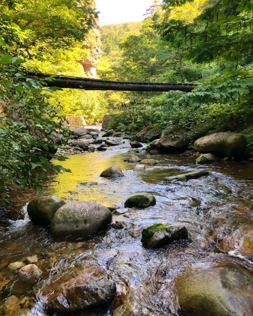 渓谷沿いに全長約2kmのトレッキングコースがあるのですが、正直なところかなり険しいです。遊歩道のように整備されているわけではなく危険な箇所もありますので、全てを歩き通すには準備が必要だと思います。しかし、途中までであればそこまで難しくなく川のそばまで下りられますし、少し先までいけるようであれば途中には大小さまざまな滝やスリル感を味わえる吊り橋があります。