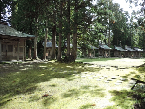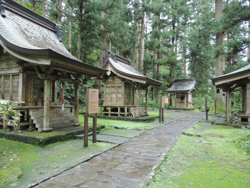 文字通り月山、湯殿山、羽黒山の三神を祀る社殿で、羽黒山参拝のハイライトであり、最大のパワースポットです。現在の社殿は1818年に再建された物で、国内最大の厚さ約2.1mの茅葺き屋根が特徴の社殿です。