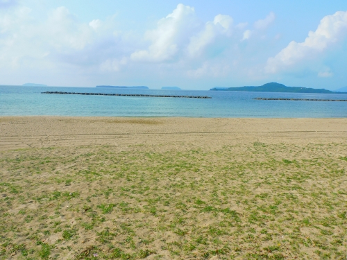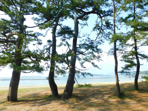 萩湾に沿って白砂のビーチと松並木が続く美しい海岸です。海水の透明度も高く夏には海水浴客で賑わう人気のビーチでもあります。