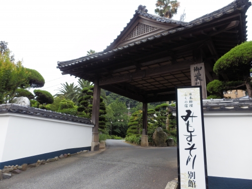 公園から横断歩道を渡って、山側に進むと見えてくるみもすそ川別館。ふぐ料理の旅館です。