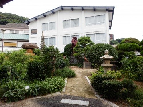 この敷地内にあるのが、安徳天皇と二位の尼の像。幼い安徳天皇が手を合わせて、祖母の二位の尼に抱かれています。