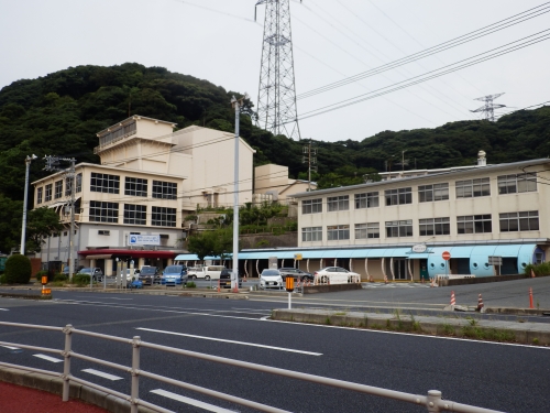 みもすそ川公園の向かいにある建物。一見、トイレのある駐車場のように見えますが、実は関門トンネルです。
