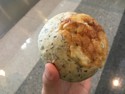 道の駅センザキッチン内にあるパン屋「ララベーカリー」では、アカモクを使用したパンを販売しています。海藻の臭みもなく、すっかりパンに馴染んで、大変味わい深いです。ちなみに左下写真の黒い線のように見えるものが、アカモクです。