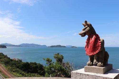 山口県の西側、関門海峡の北西に広がる響灘沿いの小高いところにある福徳稲荷神社は、赤い千本鳥居と青い海、そして海に浮かぶ島々のコントラストが美しい神社です。西長門ブルーラインと呼ばれる海沿いの国道は、関門海峡エリアと角島大橋エリアを結ぶ人気のドライブルートで、川棚温泉から角島に向かう途中にありますので、ドライブ中の立ち寄りポイントとしてもおすすめです。