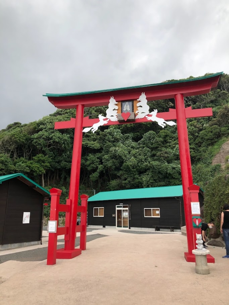 小さな漁村の守り神として祀られており最初はお堂だけでしたが、1984年から1997年にかけて現在の社殿が整備され、10年の歳月をかけて地元の漁師らが約123基の赤い鳥居を奉納しました。日本海に面した断崖絶壁の上に立ち並ぶ鳥居は、龍宮の潮吹側から約100m以上にわたって続き、訪れる人々を魅了する現在の壮大な景観になりました。