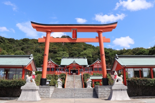 開運、商売繁盛、家内安全、航海安全、学業成就、交通安全、豊漁祈願と、ご利益も多彩です。境内から木漏れ日の中へ連なる千本鳥居のトンネルを抜けると、眼下に広がる絶景が待っています。