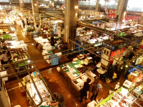 南風泊市場から下関駅を挟んで反対側。駅から車で東へ10分ほどのところにあるのが、唐戸市場です。卸売市場なので、安くて新鮮!いつも観光客でにぎわっています。