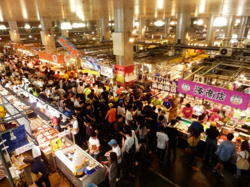 営業開始の朝5時には、魚屋さんが準備を始めます。新鮮な魚をさばく様子が見られるかも。準備風景を楽しんだら、市場の朝ごはんがおすすめ!2階の食堂で食べられます。